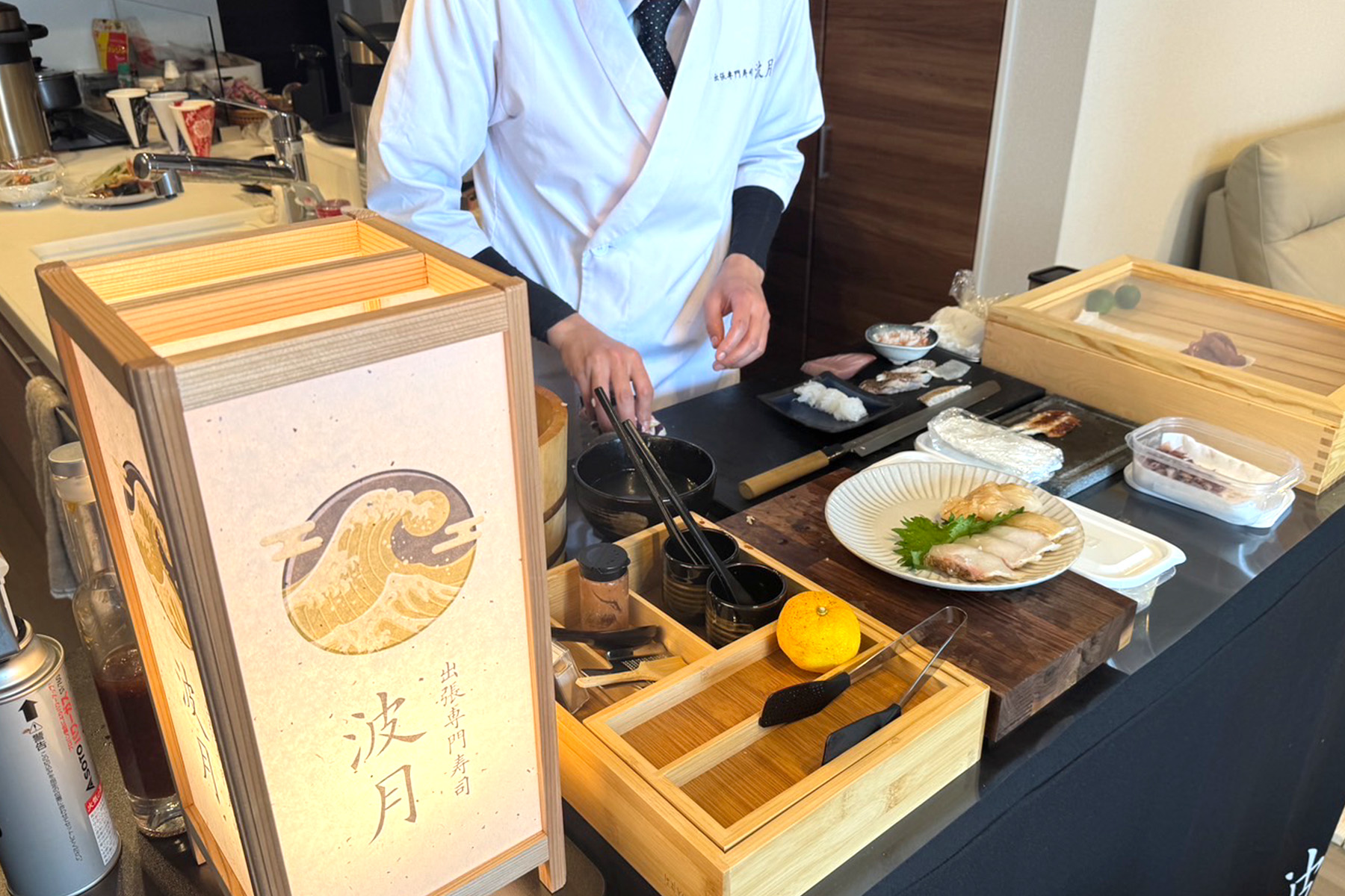 当店ではガス・コンセントの設備が無い場所や野外でも対応可能です。どこでも本格的な高級寿司をお楽しみいただけます。